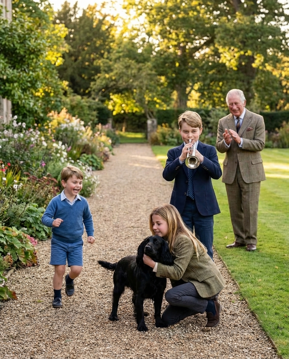 The peaceful garden, with its vibrant figures – Charlotte, Louis, George, and King Charles – reminds us of the beauty found in everyday moments. In our journey through life's complexities, it is essential to pause and appreciate the simple joys around us. Whether it's the companionship of beloved pets, the uplifting power of music, or the shared laughter among friends and family, these moments are what enrich our lives.