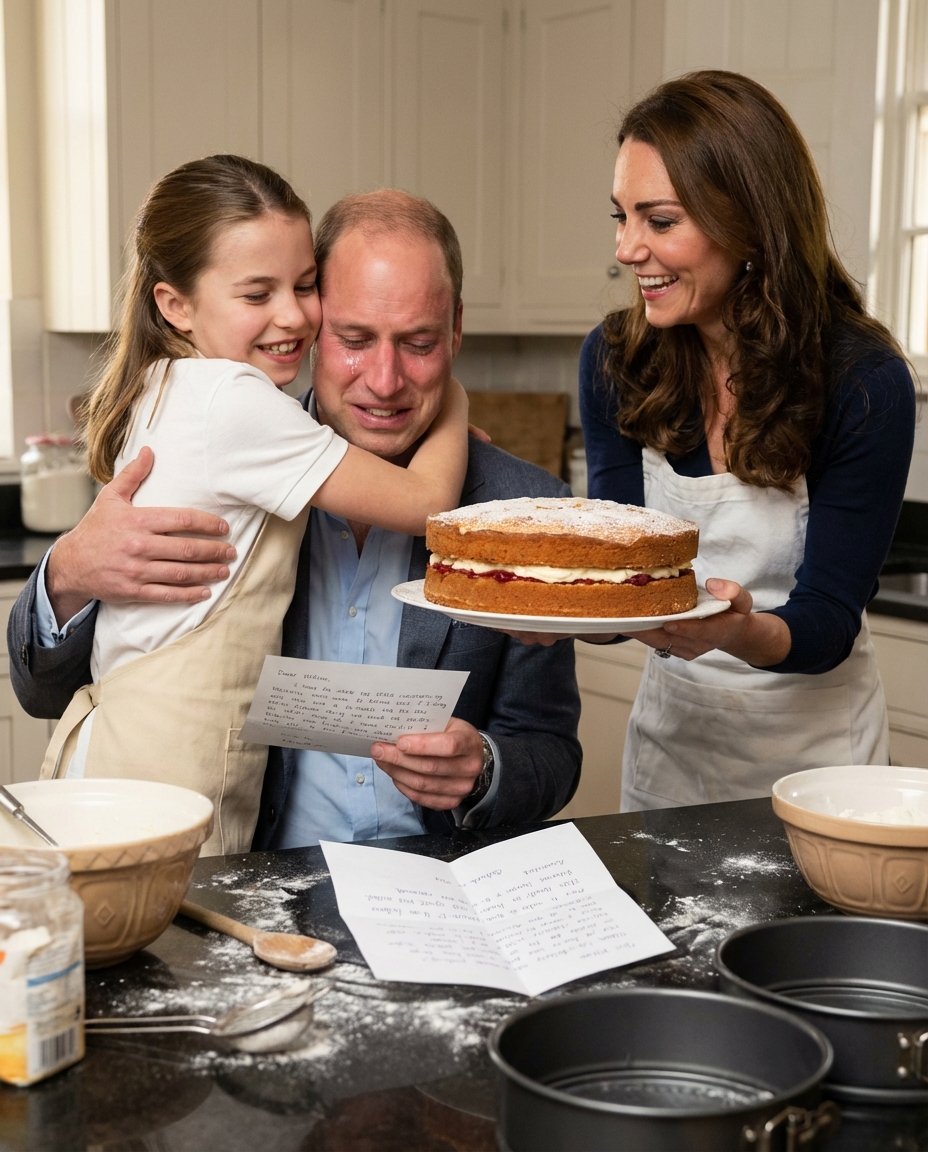 When Prince William returned home, he was greeted by the delightful aroma of freshly baked bread and the radiant joy of his daughter and wife. As they brought out the bread, Charlotte presented him with a card she had made herself. With a radiant smile, he opened the letter, and upon reading his daughter’s heartfelt message, tears welled up in his eyes.
