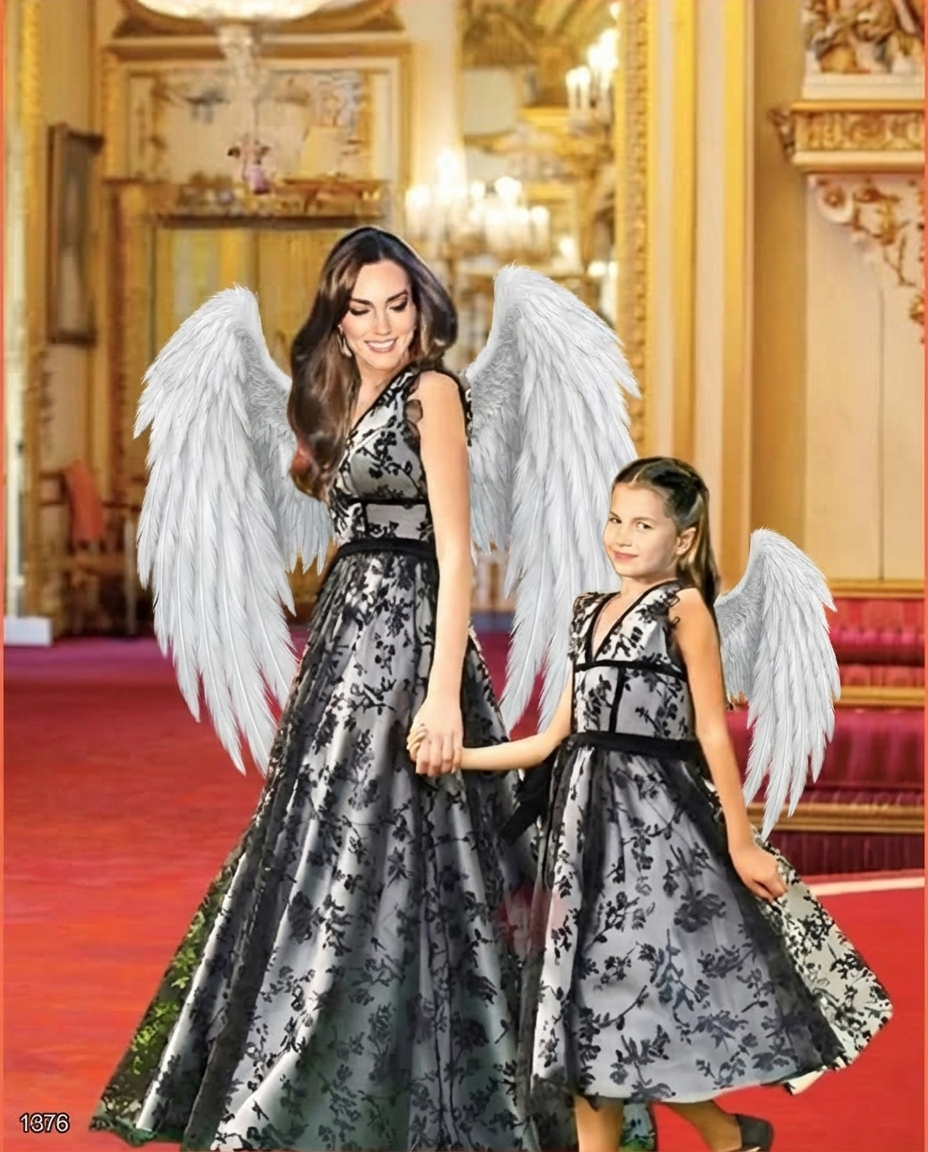 One of the highlights of Kate and Charlotte's appearance was their matching outfits. Both wore beautifully coordinated ensembles, showcasing a style that was both playful and elegant. Kate wore a sophisticated dress that perfectly complemented Charlotte's outfit, both adorned with delicate details and soft colors, reflecting the natural beauty of the surrounding landscape. The addition of angel wings to their attire elevated the overall look, evoking a sense of wonder and joy, impressing everyone present.