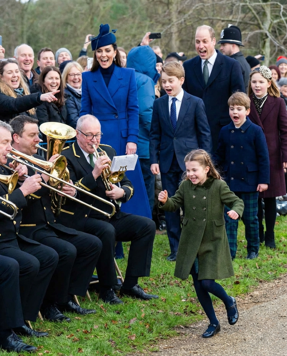 As the band began playing an upbeat tune, Charlotte was captivated by the rhythm. Without hesitation, she jumped alongside the band, surprising both the musicians and the audience. This was followed by an impromptu dance showcasing her boundless energy and carefree spirit.